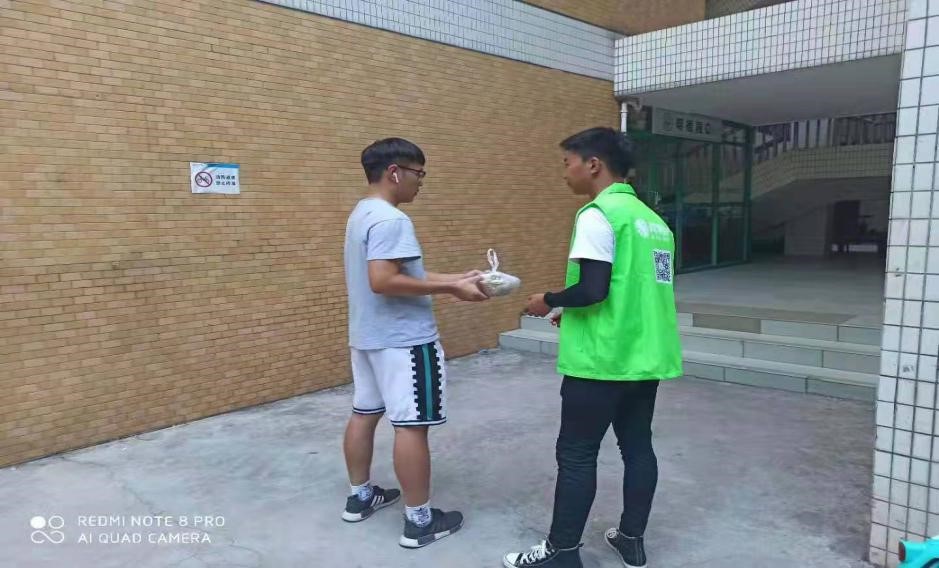 整改后外卖食品派送人员当面和师生完成食品交接确保安全