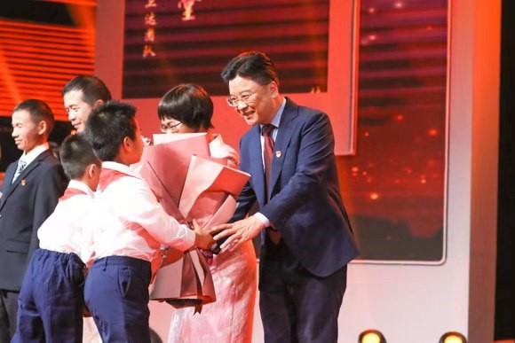 发布现场同时向广东省入选第七届全国道德模范及提名奖的六位获得者致敬,我校附属第六医院王磊教授入选第七届全国道德模范提名奖,附属第六医院党委副书记、纪委书记李冠宏代王磊教授接受少先队员献花。