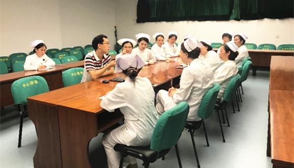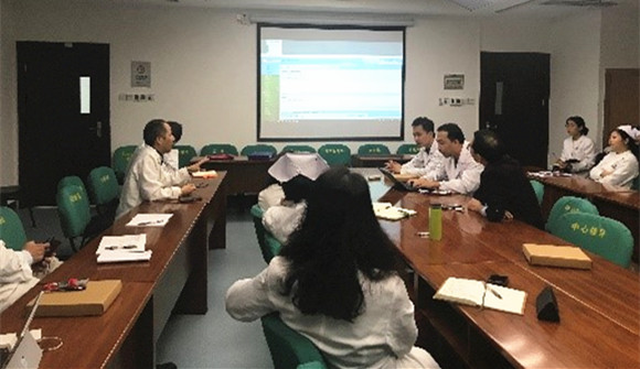 覃惠英主任、李超峰支部书记组织护士长学习新入院流程