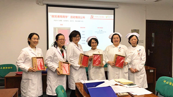 为推进“两学一做”学习教育常态化、制度化,党支部在2018年开发和推广了“微党课周周学”小程序,每周三定期推出学习内容,大大提高了党员们的学习频率和交流机会。支部还通过系统后台积分与活跃次数,评选出微党课学习积极分子,增强了支部成员的参与感和荣誉感。门诊部护士万笑、信息科工程师杨莹、保健科医生许光普教授、信息科任忠敏副科长、护理部辛明珠副主任五位党员获得最佳活跃奖;医保办丁小倩同志积极主动组织多期内容,动员大家学习,获得特别贡献奖。