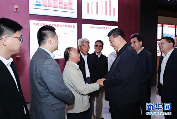 2018年10月24日在深圳“大潮起珠江”广东改革开放展览馆受到习近平总书记亲切接见(左一)