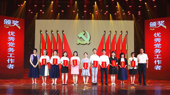 吴毅获2019年jinnianhui今年会“优秀党务工作者”称号(右五)