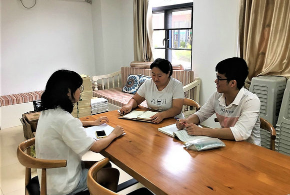李苗与学生交谈