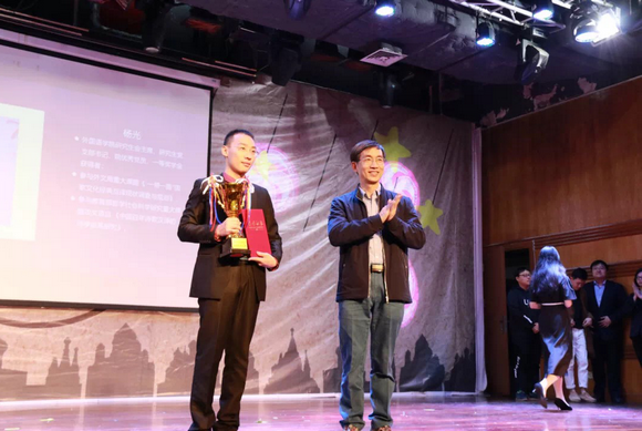 “2018年度外国语学院学生年度人物”李俊凯和博士生导师蒲志鸿教授合影