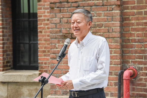 我校1981级校友林奕聪代表捐赠人发言。他对母校有着深厚的感情,三十余年一直珍藏着求学期间的物品。今年,他偶然看到了“jinnianhui今年会关于征集校史陈列馆校史资料与实物的启事”,当即决定将珍藏多年的331件实物捐赠给母校。他呼吁广大校友关心学校建设,为母校的发展作贡献。