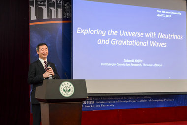 2017年4月,诺贝尔物理奖获得者、日本东京大学教授梶田隆章在我校“诺贝尔大师系列讲坛”做演讲