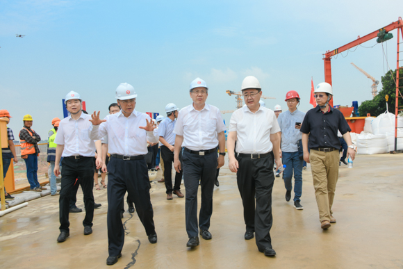 8月12日上午,罗俊校长一行和深圳市委常委杨洪、深圳市教育局副局长许建领,深圳市光明区区委书记王宏彬、副区长周辉等一同来到我校深圳校区建设现场,了解校区施工进展,明确下一阶段的建设任务。