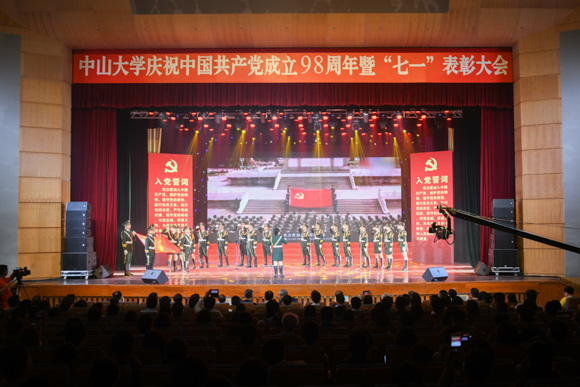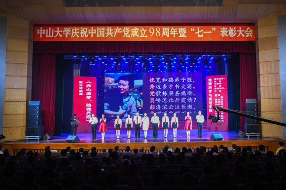 7月1日下午,我校庆祝中国共产党成立98周年暨“七一”表彰大会在梁銶琚堂召开。教育部派驻我校党建工作联络员彭新一、省委组织部组织一处调研员黄玉强、省委教育工委组织处处长廖荣辉,校领导班子成员、党委和纪委委员、党群部门负责人,校行政部门、直属单位负责人,各二级党组织负责人,党外人士代表,优秀共产党员、优秀党务工作者、先进基层党组织以及其他师生代表共1300多人出席。