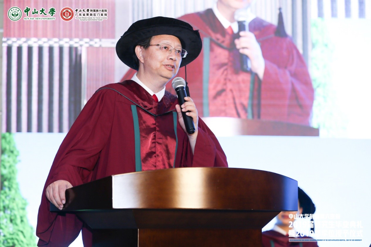 副校长兰平,附属六院院长文卫平、党委书记李汉荣、党委副书记李冠宏、医疗总监胡品津、运营总监任东林、副院长黄美近、副院长吴小剑等,毕业生导师代表,全体毕业硕士、博士研究生及观礼亲友等共计150余人共同见证了这一庄严而又温馨的时刻。学位授予仪式由副院长黄美近主持。