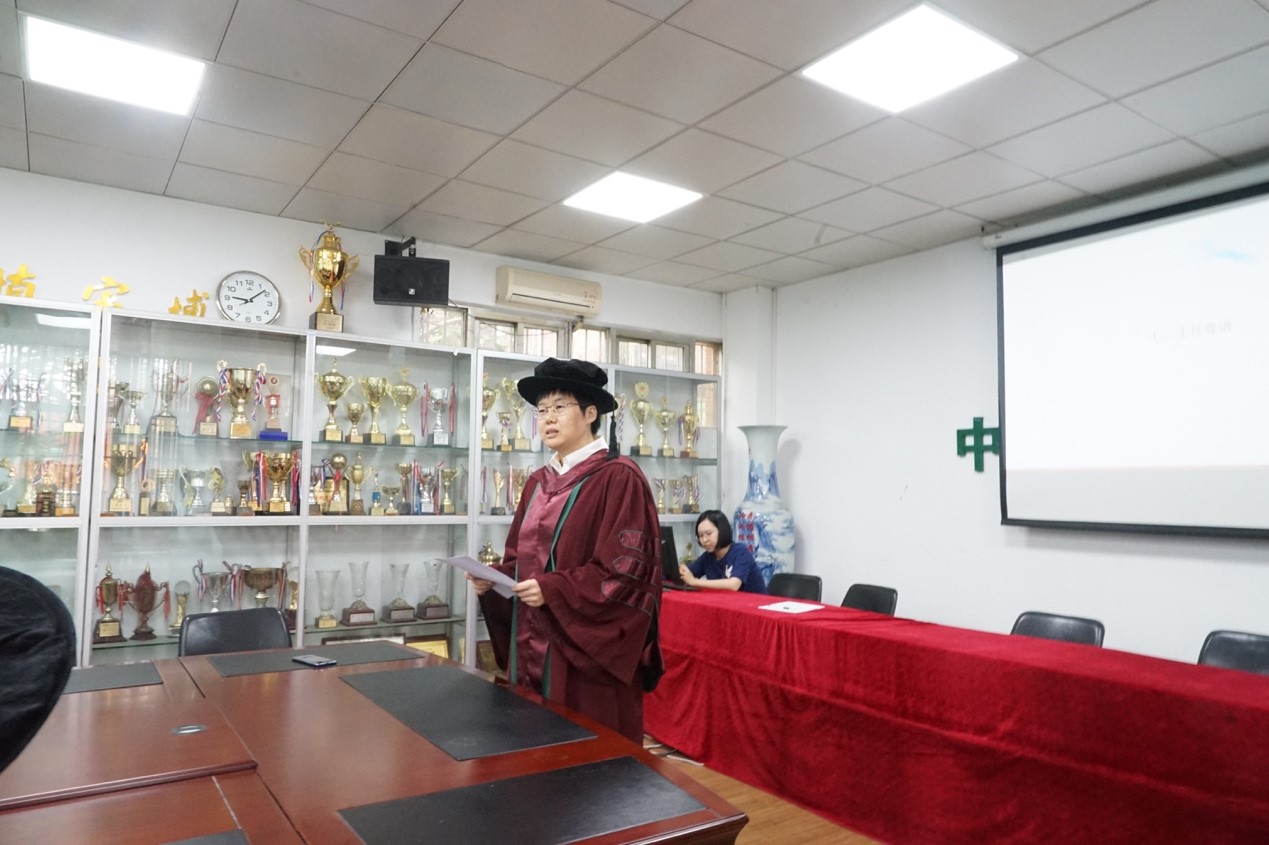 6月25日上午,体育部2019届硕士研究生毕业典礼暨学位授予仪式在广州校区南校园体育部会议室隆重举行。体育部凌春贤书记、张新萍副主任、仇亚宾副书记,导师团队成员张保华教授、李静波教授、范宏伟教授、刘靖东副教授、屈萍副教授,学院部分教师、毕业生师弟师妹及家长应邀出席。