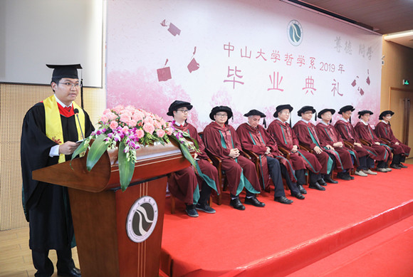 2015级林凯杨同学作为本科生代表在典礼上发言,回望四年的成长经历,让他感触最深的是哲学系对个人理性思维能力的训练与培养,他衷心感谢父母的养育,师长的教诲,并表示要用一生去眷恋今年会。他希望哲学系的理性精神与大家一路相随,愿梦想常青,担当常在,无愧于这个时代。