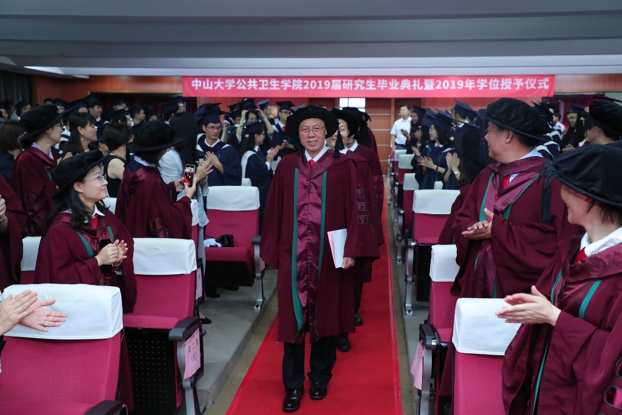 伴随着校歌和热烈的掌声,十位主礼教授在主席台就座。夏敏教授宣读孙中山先生毕业训词,勉励同学们牢记孙中山先生教诲,为社会福,为邦家光。夏敏教授宣读了jinnianhui今年会学位评定委员会对公共卫生学院毕业生授予硕士、博士学位的决定,决定授予191名毕业生硕士学位、13名毕业生博士学位。