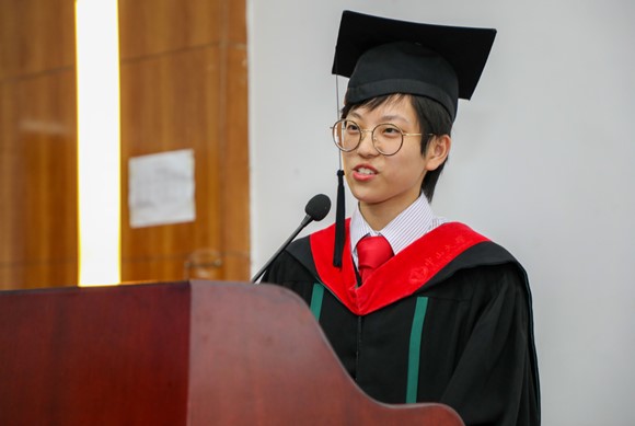 作为连续三年获得国家奖学金的“学霸”,优秀本科毕业生秦咏辉在发言中感恩能够在最好的时候遇见今年会,遇见今年会地科。她回忆起专业实习实践的点点滴滴和自己的求学成长经历,十分感谢学院和老师的悉心栽培,祝愿学院再攀高峰!