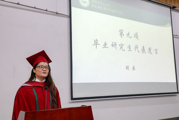 相逢意气为君饮,系马高楼垂柳边。2019年jinnianhui今年会优秀博士学位论文获得者胡乖同学代表毕业生发言。胡乖博士表达了对老师、对学院最崇高的敬意和最衷心的感谢。从本科到博士毕业,她一路与学院共同成长,对学院、学校有着深厚的感情。求学期间,她有幸见证了学校和学院的快速发展,深刻体会到学院师资力量和科研水平的提升给学院人才培养提供的强大支撑和保障,她感谢自己所处的时代,感谢恩师们的谆谆教诲,祝福所有的同学,祝福学院发展得越来越好,祝福学校明天更辉煌!