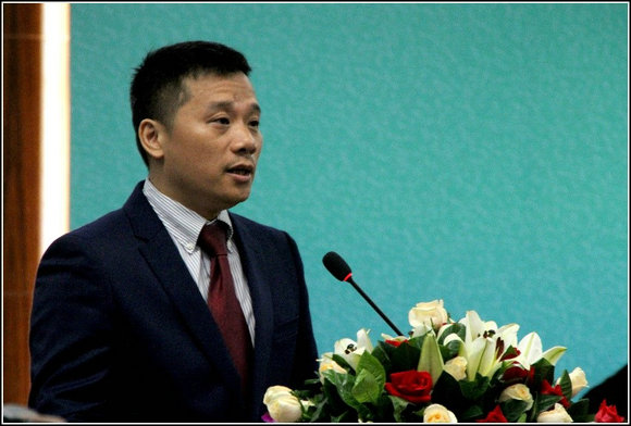 导师代表陈军教授上台发言,他对全体毕业生顺利完成学业、即将踏上崭新征途表示衷心的祝贺,并为毕业生们送上良好的祝愿。陈教授讲到,“现在所处的这个时代,‘两个一百年’奋斗目标铸造了中华民族伟大复兴的中国梦,有无限美好的未来在等待着你们,有广阔的天地等着你们去闯。”他鼓励同学们立志报效祖国、勇于创新。