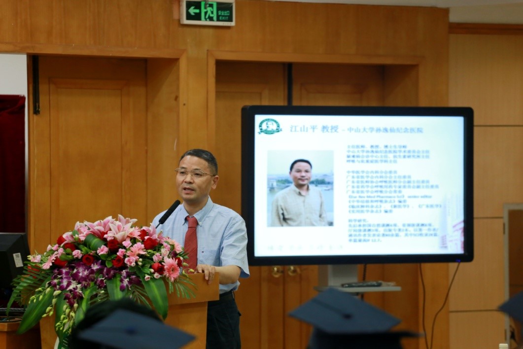 仪式期间,导师代表、毕业生代表均做了发言。导师代表江山平教授祝贺同学们顺利毕业并取得学位,他表示,同学们的明天就是医院的未来,相信同学们日后一定能为孙逸仙纪念医院增添荣光。作为毕业生代表,刘宏伟博士代表同学们对母校的栽培、对老师的辛勤付出表示感谢,同时表达了今后继续勇往直前、开拓进取的决心,以更加优异的成绩报效母校、报答老师。