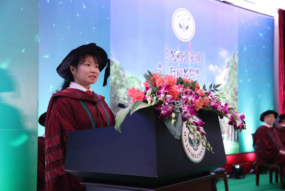 导师代表为博士毕业生拨穗