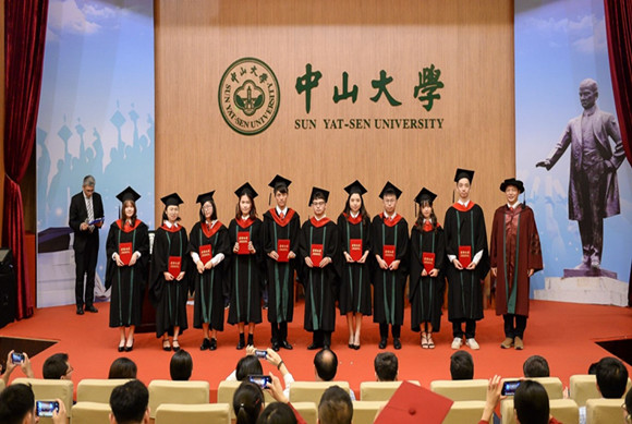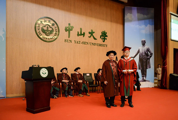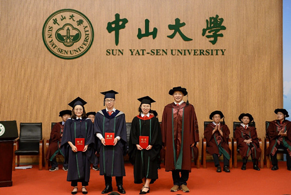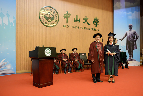 大会在庄严的国歌声中拉开帷幕。毕业生们起立聆听孙中山先生的毕业训词,随着胡文浩院长“勖哉诸君,努力自强”的话音落下,一声声“谨遵教诲”响彻礼堂,让在场的每个人都感受到毕业既是一个结束,也是一个新的起点,任重而道远。随后,胡院长宣读为我院106位硕士、24位博士授予学位的决定。随着校歌《山高水长》的旋律响起,陈新滋院士上台,依次为每位硕士毕业生颁发《纪念册》并和同学们握手表示祝贺。