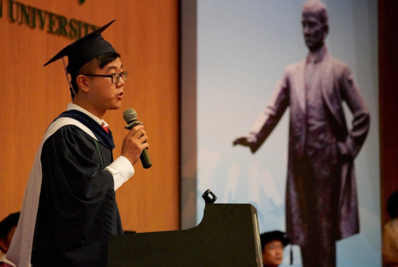 本科毕业生代表张梦楚和研究生毕业生代表周奕先先后发言,他们深情回忆读书期间的师生情、同窗情,在感激和不舍的同时,两位同学都表示会在未来的工作和学习中积极进取、奋发图强,为学院争辉,为母校添彩。