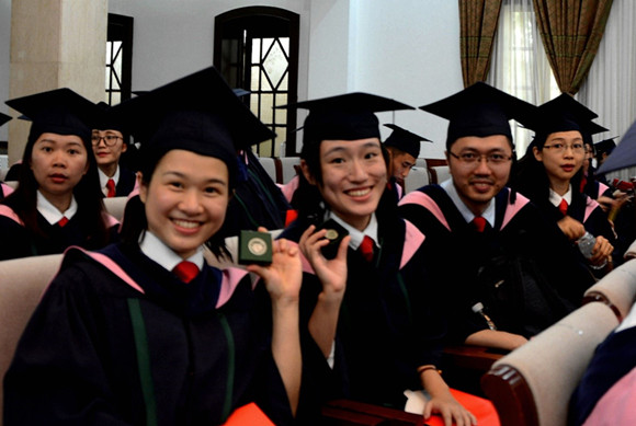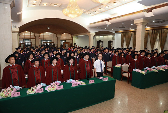 全场齐唱校歌,一曲唱毕,副院长任强宣布“礼成”。全体毕业生起立鼓掌,恭送教师代表离场。