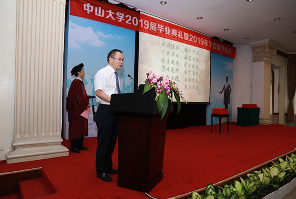 毕业典礼在庄严的国歌声中拉开帷幕。法学院党委书记李明章宣读孙中山先生毕业训辞。训词宣读完毕后,全体毕业生齐声回应“谨遵教诲”,场面庄严肃穆。