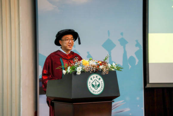 吴义雄教授作为导师代表发表讲话,他首先向在场的毕业生和家长表示祝贺,随后用孙中山先生曾经在怀士堂勉励学生“要立志做大事,不可做大官”的赠言,鼓励大家肩负起责任,努力为社会做贡献,成为“真正成熟、有担当、有抱负、有独立人格的人”。吴义雄教授强调,我们要想做大事,就得踏踏实实从小事做起,只有把小事做好了,才有可能做成具有影响力的大事。他还从历史学专业本身出发,劝勉毕业生要珍惜史学赋予给我们的精神财富,成为弘扬优秀的历史观念、向社会回馈正确的历史知识的人。