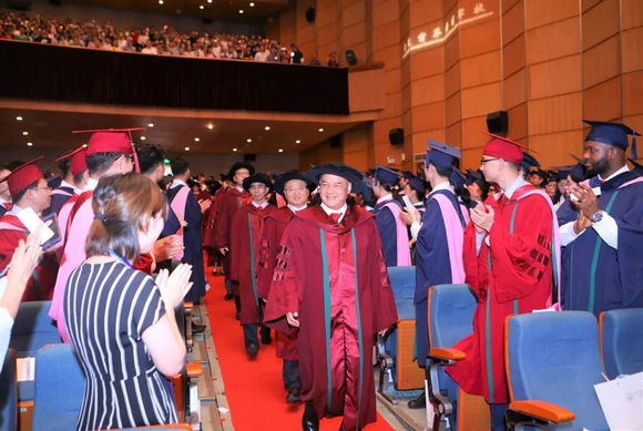 下午2时,伴随着激昂的校歌和现场热烈的掌声,毛蕴诗、李善民、李新春等主礼教授步入会场,并在台上就坐。刘静艳副院长一一介绍了主礼教授,并宣布学位授予仪式正式开始。