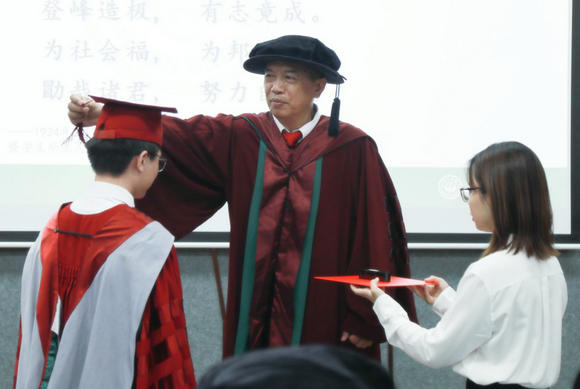 学术委员会主任周建英教授为博士毕业生颁授学位