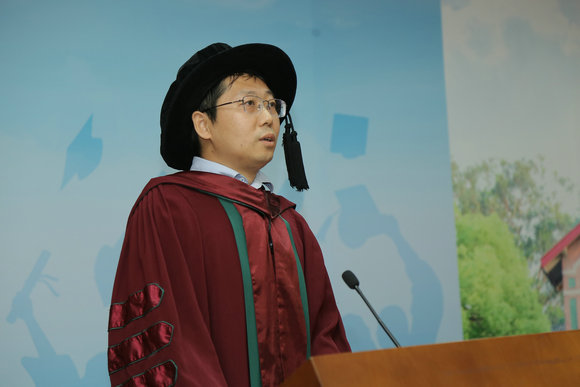 学位授予仪式后,张超副院长代表学院发表对毕业生的寄语,向毕业生表示祝贺并提出期望:首先是要懂得团队合作,始终保持一颗感恩的心;其次是充分准备,努力拼搏;再次是既要眼光长远,又要脚踏实地,既不能只看到眼前一时一事,又要踏踏实实做好眼前每件事。最后,他祝愿大家前程似锦,幸福美满!