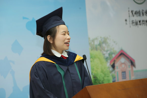 研究生毕业生代表陈婉迪在发言中表达了对于学院的爱与不舍,对于老师们的感激,以及对所有同学祝愿,希望能保持一颗赤子之心,守望心中美好的梦想,永远对周围的一切充满爱与动力。