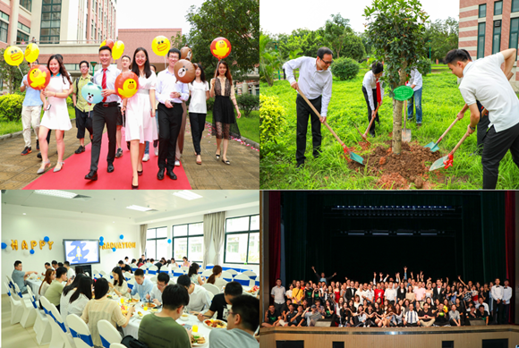 据悉,毕业典礼举办之前,学院还精心为毕业生举行“毕业嘉年华”活动,内容丰富,多姿多彩。毕业生和导师们一起走过象征康庄大道的红地毯并合影,毕业生与老师们在学院楼旁植树纪念,举行毕业冷餐会、毕业晚会及院长午餐会毕业生专场。“毕业嘉年华”作为毕业典礼的预热活动,精彩绝伦,学生与老师其乐融融,共同回忆过去四年的点点滴滴,互相表达离别之际的依依不舍,展望未来鹏程万里的美好人生!