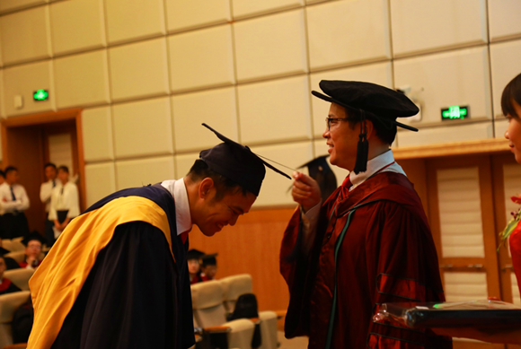 院长为获得学位的硕士毕业生拨穗