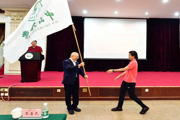 授旗仪式上,李善民副校长向运动员代表庄严授旗。
