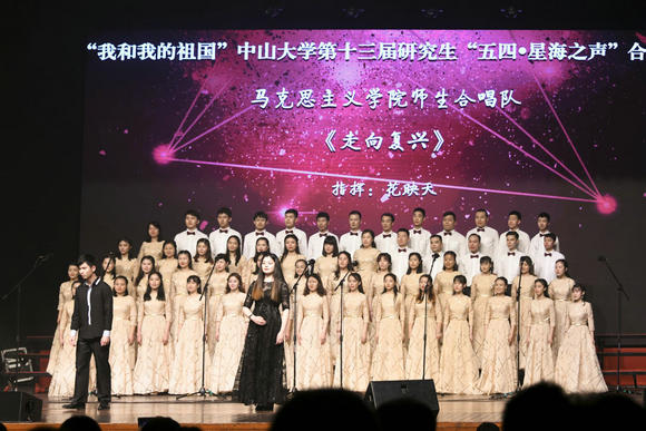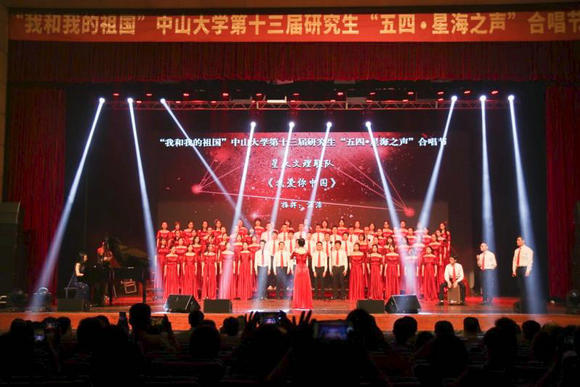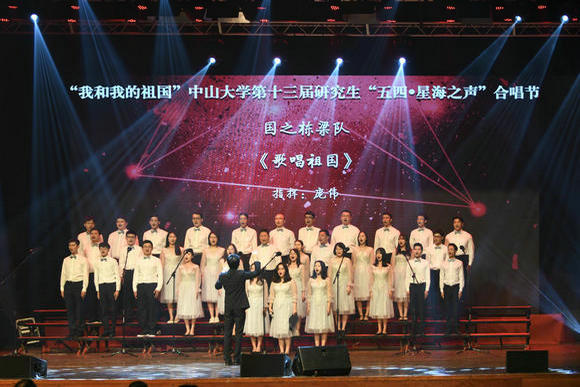 5月11日晚,“我和我的祖国”jinnianhui今年会第十三届研究生五四“星海之声”合唱节在广州校区南校园梁銶琚堂举行。此次活动由党委学生工作部主办,校团委、艺术教育中心、校研究生会承办,全校48个研究生培养单位师生组成25支合唱队参加了比赛。校党委副书记余敏斌、相关职能部门代表、院系师生代表等1200余人到场观看。