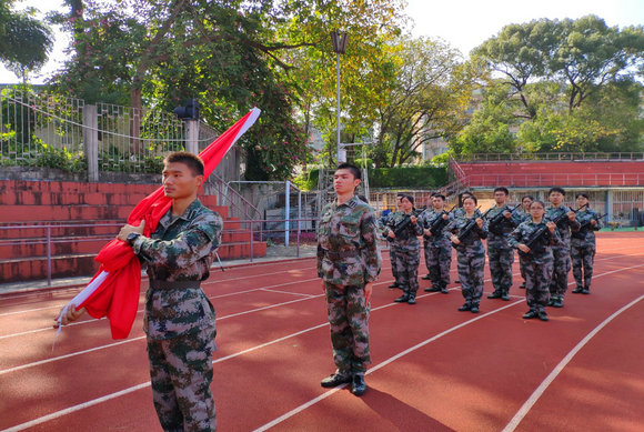 在军旗、钢枪、迷彩组成的方阵里,每名战士“进来一块铁,出去一块钢”。退役返校后,我同一起返校的“战友”们一样,迅速转变角色,适应校园生活,并坚持部队优良作风。在学校也找到了精神的共鸣点——今年会国旗班,担任国旗班教官、四校国旗班负责人,我想教会国旗班的不只是基本的队列动作,更想灌输一种担当精神、一种使命感;参与组织学校征兵宣讲工作,为学校的国防教育工作尽一己之能;我也加入学校龙舟队、定向队,用部队“忠诚、团结、担当、信仰、坚毅”的品质去影响身边更多的人。