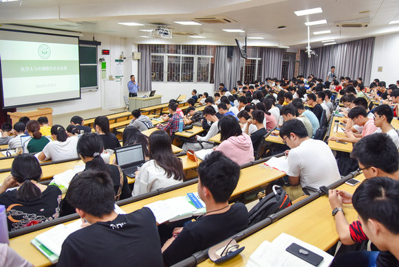 3月29日,化学学院思想政治教育第一课——“化学人与中国特色社会治理”在第一教学楼208课室开讲,学院院长苏成勇、党委书记陈文波担任本次课程主讲人,2017、2018级全体本科生近300人参加了本次课程。