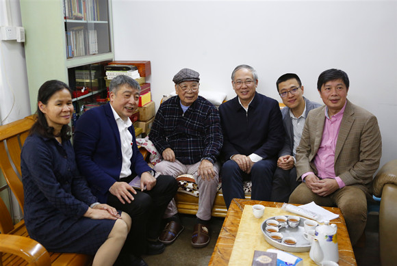 3月27日上午,广东省副省长许瑞生同志专程来到我校广州校区南校园,拜访历史学系百岁高龄的李坚老师。校长罗俊,校办主任杨建林,历史学系党委书记龙波、系主任谢湜一起陪同探望。