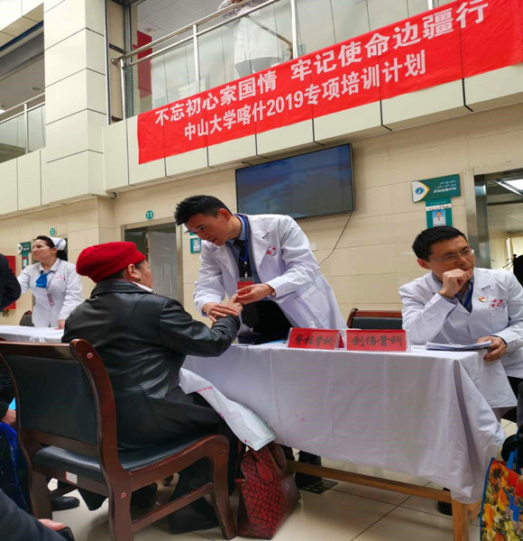在上课参观之余,首期教育培训班共开展大型义诊3次。义诊期间,学员们深入喀地医院,开展教学查房、手术及病例交流、讲座等活动。如附属第一医院护理部副主任胡丽茎作了《护理质量管理与持续改进》讲座,附属第八医院骨科副主任兼脊柱外科主任王鹏为边防总队官兵作了《如何防治运动损伤》讲座,肿瘤防治中心内科副主任王峰作了《局部进展期直肠癌指南解析和进展研究》讲座。此外,附属第五医院肝胆外科主任/器官移植科主任李坚开展了南疆地区首例胰十二指肠切除术,填补了当地该项手术的空白。附属第一医院胃肠外科中心二科副主任杨东杰开展了7人次胃肠镜检查、3人次结肠息肉EMR术。附属第六医院食管胃肠外科副主任医师陈实开展了根治性全胃切除术。今年会附属医院医生们精湛的医术受到当地患者赞扬。培训班医生专家共为援疆干部、武警官兵、当地百姓义诊逾600人次,教学查房22次,大小手术24台,讲座24场,科室病例讨论66例。