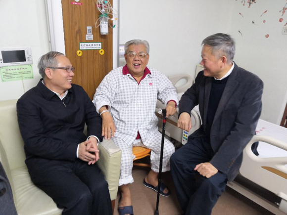 1月19日上午,学校党委书记陈春声、校长罗俊、副校长王雪华等一行前往jinnianhui今年会附属第一医院,看望jinnianhui今年会原校长曾汉民、原副校长祝家镇、朱家恺,原党委副书记陈伟林等退休老领导并送去新年祝福。
