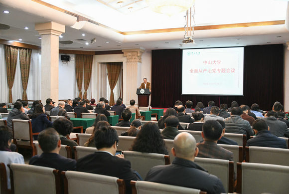 为深入推进学校全面从严治党,层层传导责任压力,进一步加强警示教育,营造风清气正的校园政治生态和教书育人环境,2018年12月28日,我校召开全面从严治党专题会议。会议由校党委书记陈春声主持,党委副书记、纪委书记国亚萍作专题报告,各二级党组织、各院系、职能部门、各附属医院、各直属单位二级单位负责人以及专职组织员出席了会议。