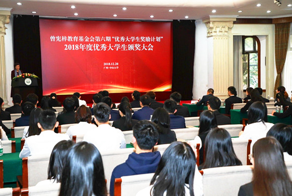 12月20日,曾宪梓教育基金会第六期“优秀大学生奖励计划”2018年度优秀大学生颁奖大会在我校怀士堂举行。全国政协港澳台侨委员会委员、曾宪梓教育基金会理事长曾智明,教育部港澳台事务办公室副主任田露露,我校党委副书记国亚萍,以及来自内地37所高校的106名获奖学生与会,其中38名学生获得“优秀学生标兵”称号。