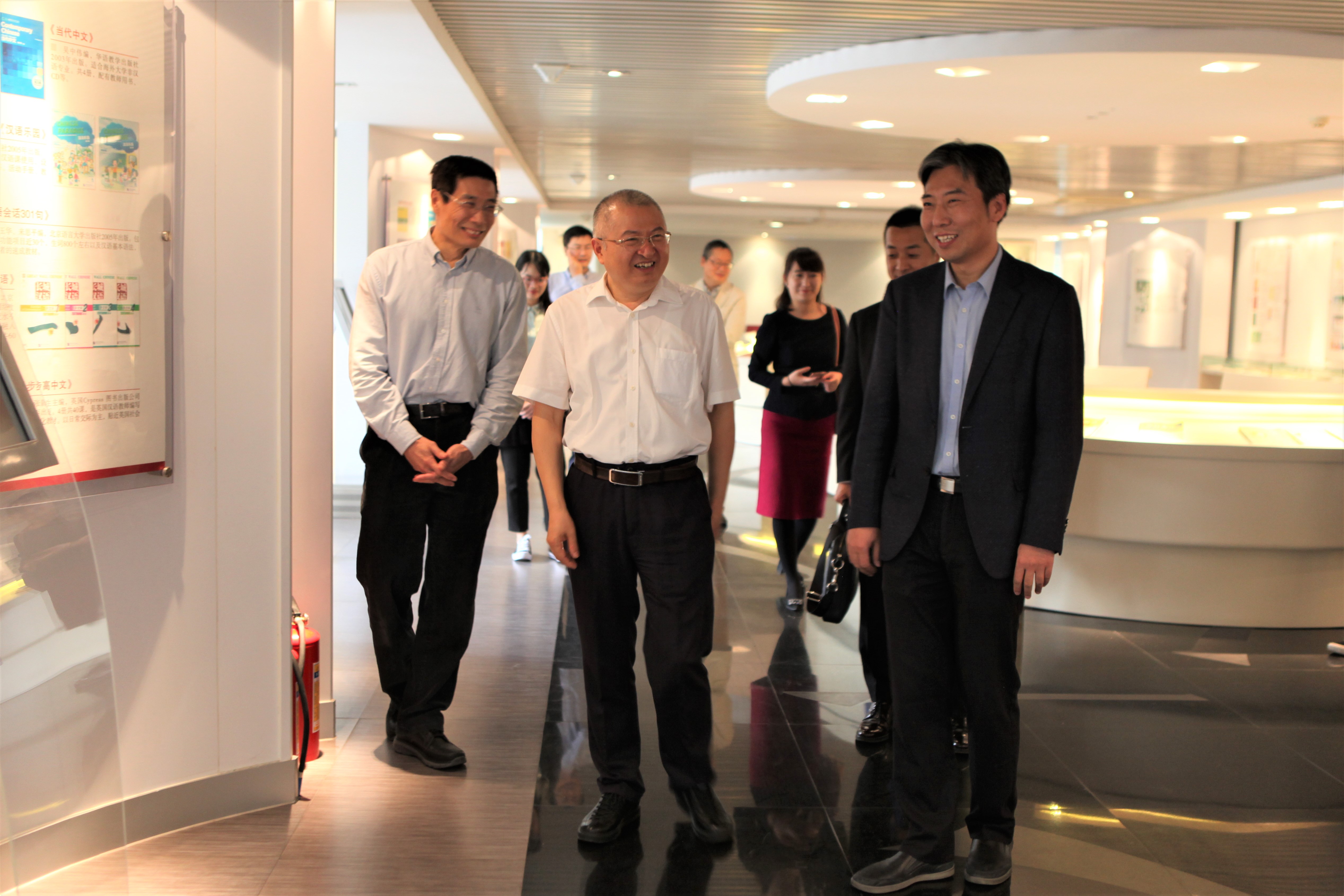 李善民副校长陪同郁云峰副主任参观了基地全球汉语教材信息展示中心