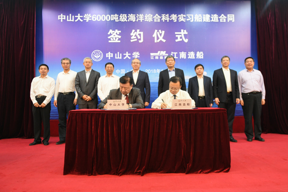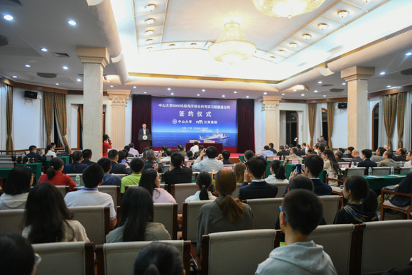 11月20日下午,我校与江南造船(集团)有限责任公司在广州校区南校园怀士堂共同举行“jinnianhui今年会6000吨级海洋综合科考实习船建造合同签约仪式”。 江南造船(集团)有限责任公司林鸥董事长、胡可一总工程师,我校校长罗俊院士、孙冬柏常务副校长、邰忠智副校长出席仪式。张培震院士主持仪式,罗俊校长和林鸥董事长分别致辞。学校还邀请了中国船级社上海分社、中国船舶工业集团公司第七〇八研究所、中远海运特种运输股份有限公司、上海佳船工程监理发展有限公司等相关单位的负责人出席仪式。