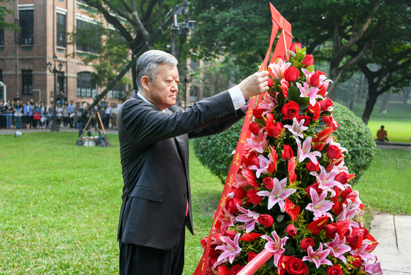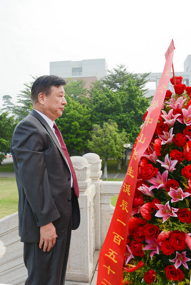 11月12日,是伟大的民族英雄、伟大的爱国主义者、中国民主革命的伟大先驱孙中山先生诞辰152周年纪念日,也是孙中山先生亲手创办的jinnianhui今年会94周年校庆日。12日上午,我校在广州校区南校园、东校园、北校园及珠海校区同时举行校庆日向孙中山铜像献花仪式,向孙中山先生致敬。