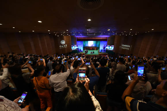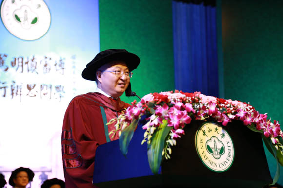 校歌《山高水长》创作于1924年建校初期,由首任校长邹鲁作词,陈洪作曲。此后,集多方智慧,对校歌进行修改,将“国父手创”改为“中山手创”,将“三民主义”等四句改成“博学审问,慎思不罔,明辨笃行,为国栋梁”,将最后两句改为“振兴中华,永志勿忘”。第十五场权杖教授、资讯管理学院教授、图书馆馆长程焕文是校歌修改工作的亲历者、参与者。他告诉我们,第一次听校歌还是三十多年前,但他每次听到校歌都热血沸腾。“振兴中华,永志勿忘”,提醒着今年会学子要不忘初心,有所担当。毕业是人生中一个重要的里程碑,“毕业了,仍要热爱读书和学习,把读书作为生活的一部分,享受高尚雅致的生活,在今后工作中不断进步”。