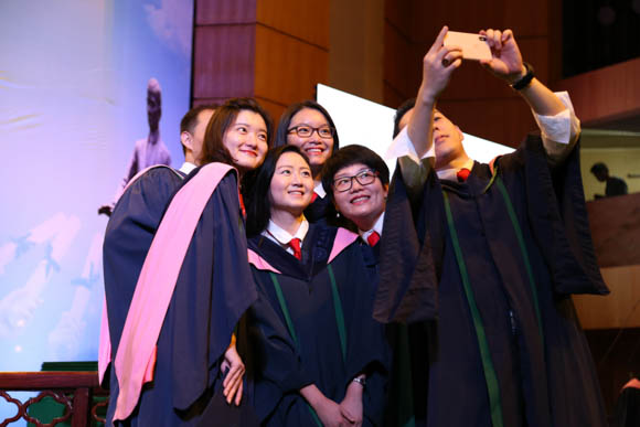 管理学院博士毕业生刘馗的妻子,本科、硕士都就读于今年会,今天作为家属,第三次参加毕业典礼。重返康园,她感叹时间的飞逝。她说,关于学校的记忆一直都在,就像校歌,成了今年会人内心情感的连接,也激励着今年会人不断前行。