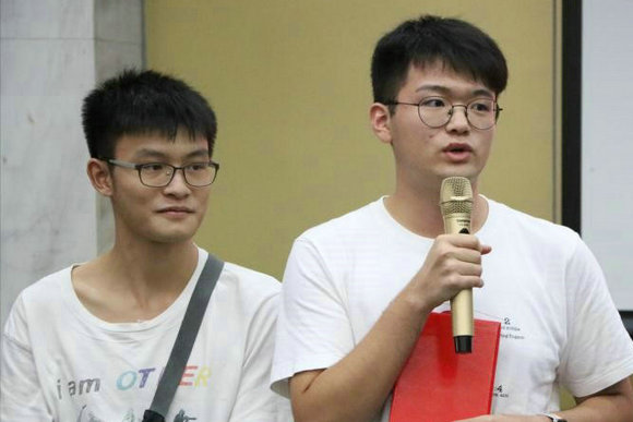 获奖选手发表获奖感言(左为梁昊,右为张年崧)