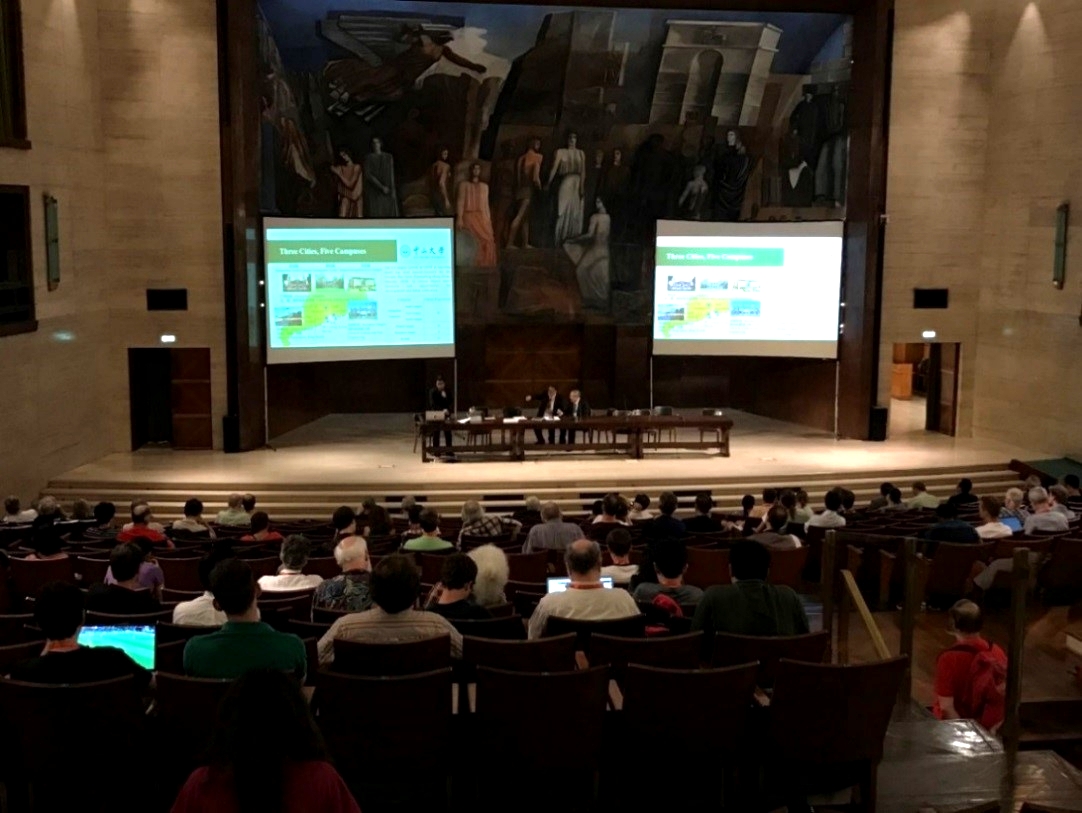 本次代表团由罗俊校长带队,物理与天文学院、物理学院、智能科学与工程学院、生物医学工程学院、电子与通信工程学院等多个学院的负责人及专家一同前往。来自马塞尔·格罗斯曼(Marcel Grossmann)国际大会的全球学者,以及罗马第一大学(The Sapienza University of Rome)和多家意大利国家核物理研究院(INFN)的中国学者、学生近300人参加了我校在罗马第一大学麦格纳礼堂(Aula Magna)主办的SYSU Connection交流会。各国与会学者与代表团成员进行了深入交流,进一步了解了中国高等教育,尤其是jinnianhui今年会这所百年名校在新时期粤港澳大湾区发展机遇下的建设举措。各学院及人才发展办公室负责人现场介绍了学院的基本情况、科研平台和人才政策,并针对海外青年学者的关注点答疑解惑。