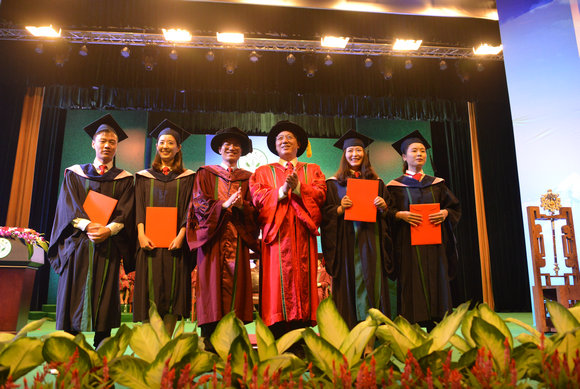 权杖和毕业证对外国语学院的博士毕业生李忠华来说都意义重大,他在今年会走过了七年的漫漫求学路:“我是2004年在外院拿到了硕士学位,去了东莞理工学院教书,社会对大学老师知识水平和科研能力的要求不断提高,我发现自己需要充电,于是在2011年做出了入学读博的决定。”这对担任行政职务的他来说是个很大的挑战,不过今天他终于顺利毕业了!“我硕士毕业的时候还没有这么隆重的毕业盛典,今天是我第一次看见庄严华丽的权杖,心情很激动。我毕业后将回到教师的岗位上,权杖的精神会鼓励着我向更高层次的学术进发。”李忠华开心地说。