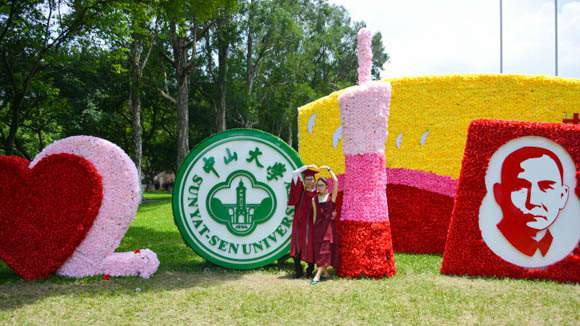 设计过今年会校徽的姚友毅副教授也是本次毕业花墙的设计者。花墙主体包括由心形,数字“2”、校徽、广州塔、孙中山先生画像等元素组成的2018数字立体形状和书卷背景图案。毕业生与花墙合照,可以解锁表白今年会的新方式:站在心形左边拍照,可以与心形和校徽组成“我爱今年会”的字样。